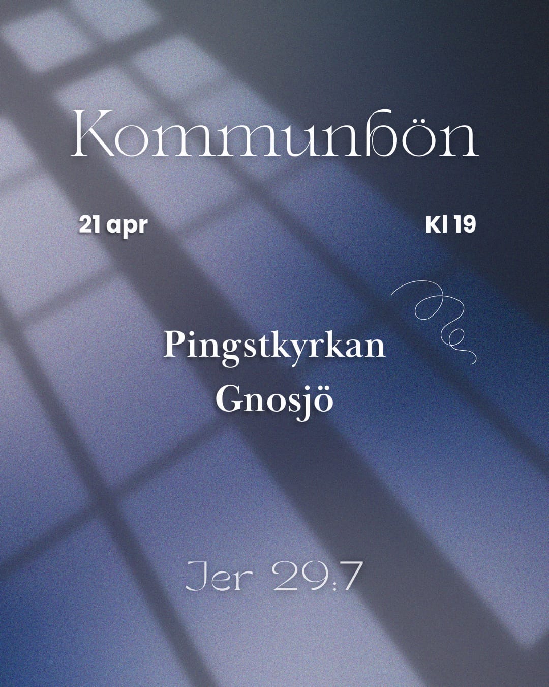 21 apr 19:00 Kommunbön i Pingstkyrkan Gnosjö Bön för kommunen tillsammans med kyrkorna i vår kommun. Lägg till i kalender Google Kalender iCalendar Outlook 365 Outlook Live Dela