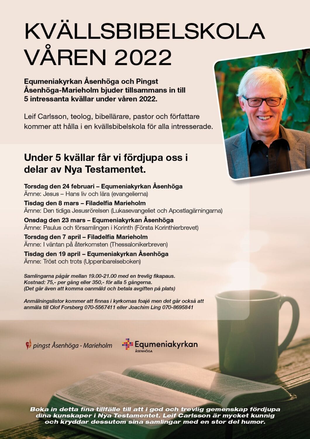 Detta evenemang har redan ägt rum. 19 april, 2022 19:00 - 21:00 Kvällsbibelskola i Equmeniakyrkan Ämne: Tröst och trots. Serveringsgrupp 1. Lägg till i kalender Google Kalender iCalendar Outlook 365 Outlook Live Dela